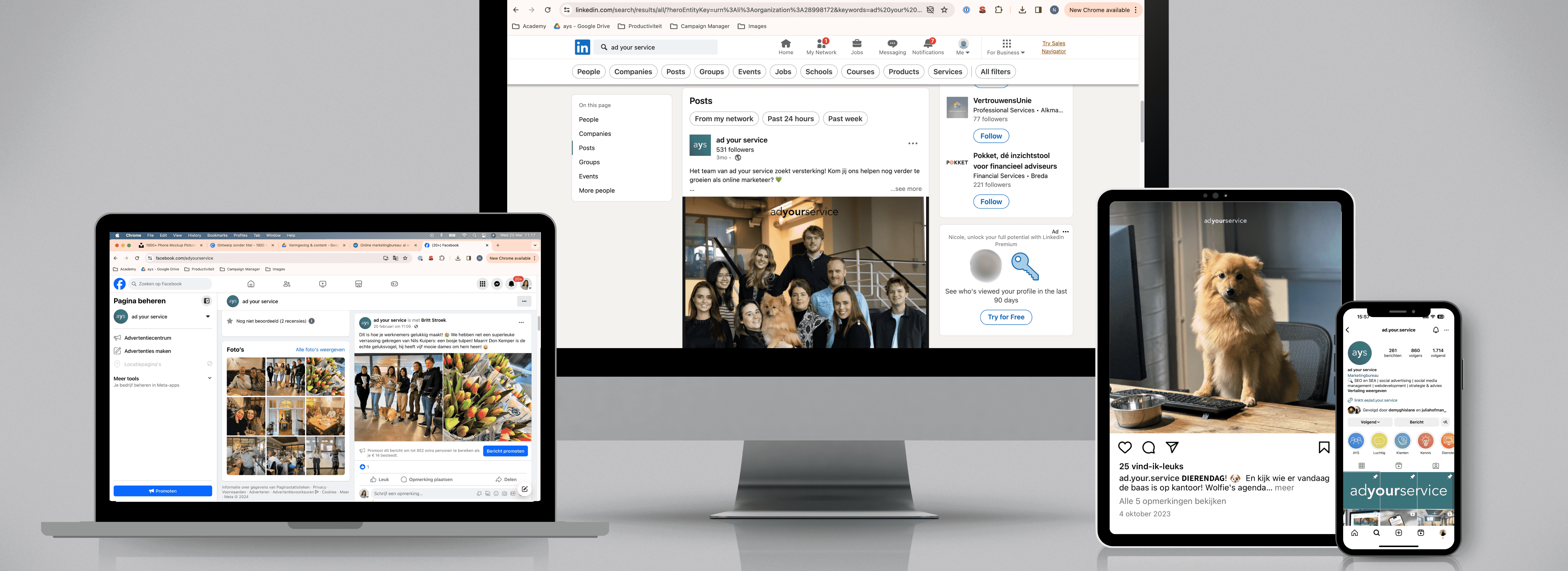 Wil jij meer bezoekers, klanten, verkopen of aanvragen dan óóit tevoren? Dat snappen we. Neem contact met ons op om samen te bekijken wat wij voor elkaar kunnen betekenen! ad your service werkt namelijk voor iedereen.